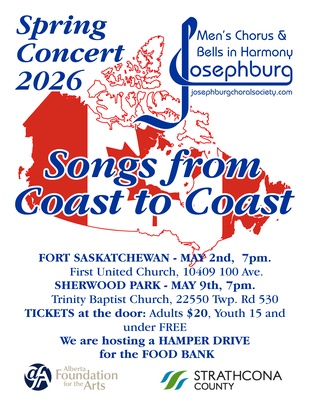 Fort Saskatchewan - May 2nd, 7pm. First United Church, 10409 100 Avenue. We are hosting a HAMPER Drive for the FOOD Bank. Sponsored by the Alberta Foundation for the Arts & Strathcona County
